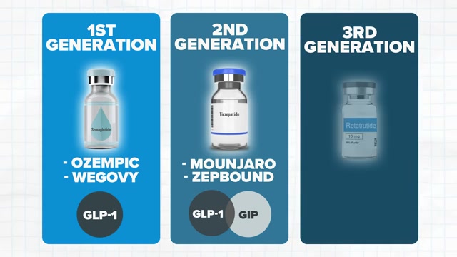 How the three generations of weight loss drugs compare — single, dual, and triple agonists.